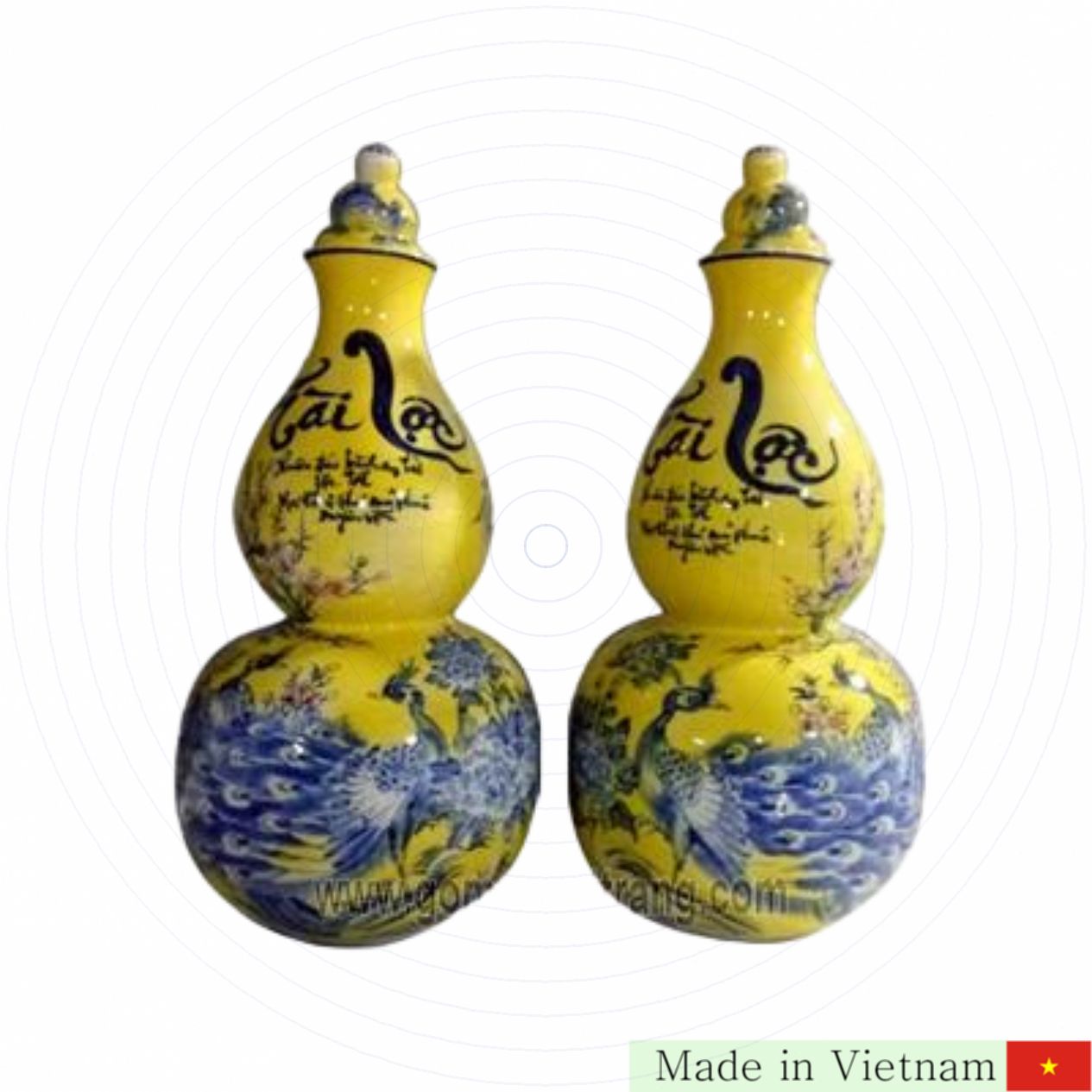 아름답고 정교한 공작무늬가 그려진 황금빛 호롱 도자기입니다. 반짝이는 황금 유약으로 마감되어 고급스러움이 돋보이며, 세련된 디자인으로 집 안이나 사무실 어디에 두어도 돋보입니다. 강한 내구성과 안정적인 형태로 오랫동안 사용할 수 있어 실용성과 미적 가치를 동시에 만족시켜 줍니다.