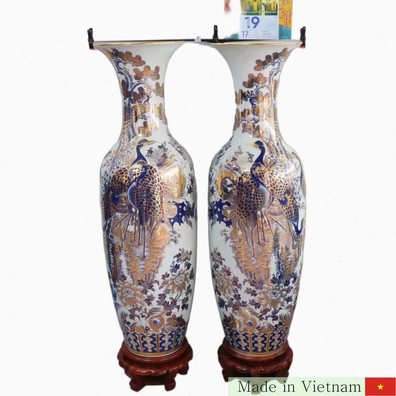 저희는 베트남 바트장(Bát Tràng)에서 제작된 LB6LVV2 연꽃 학 무늬 도자기 화병을 소개합니다. 전통적인 청자와 24K 금으로 그려진 황금 무늬가 조화를 이루어, 어느 공간에 두어도 품격을 높여 줍니다. 고풍스러운 청색과 풍수에 맞춘 색상 배열이 조화롭게 어우러져 행운과 번영을 상징합니다.