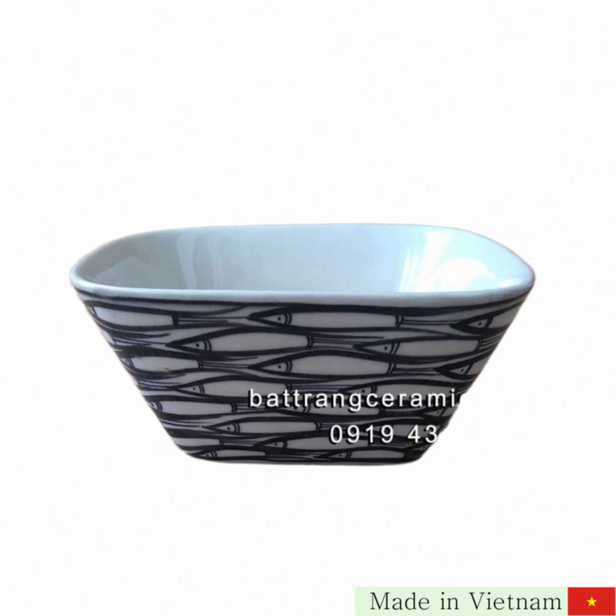 Tô sứ vuông vẽ cá đàn 14.5cm는 아름다운 어패류 모티브와 세련된 사각 디자인이 조화를 이룬 최고급 도자기 제품입니다. 14.5cm의 적당한 크기로 다양한 요리에 활용하기 좋으며, 섬세한 손그림 장식이 전통과 현대미를 동시에 담아냅니다. 집이나 레스토랑 어디에든 어울리는 고급스러움을 자랑합니다.