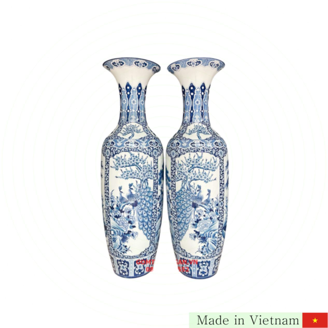 저희가 소개하는 바틀로, 1m4 크기의 바틀리빙(Bát Tràng) 전통 도자기 작품입니다. 청화(푸른색) 유약으로 정교하게 그려진 사계절 사신도(四季) 무늬가 매우 고급스럽고 우아한 분위기를 만들어 냅니다. 각 계절의 상징이 조화롭게 어우러져 집안에 풍성한 기운을 불어넣어 줍니다.
