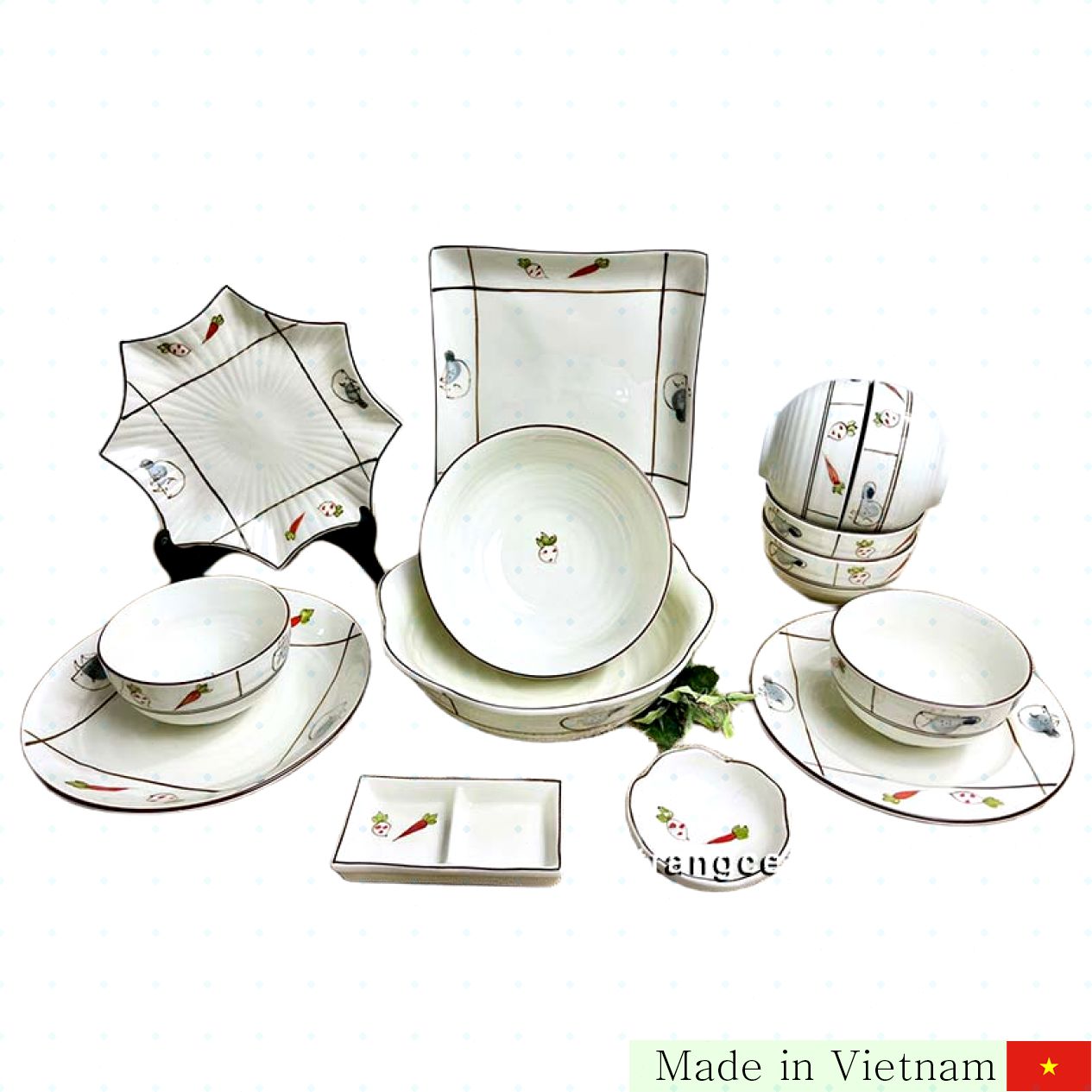 우리의 바트랑 크림 유약 야채 무늬 14종 식기 세트는 모든 가정에 꼭 필요한 필수 아이템입니다. 고급스러운 크림색 유약과 손수 그린 야채 문양이 조화를 이루어, 식탁에 특별한 분위기와 개성을 더합니다. 또한, 인체에 무해한 안전한 소재로 사용자의 건강을 최우선으로 생각한 제품입니다.