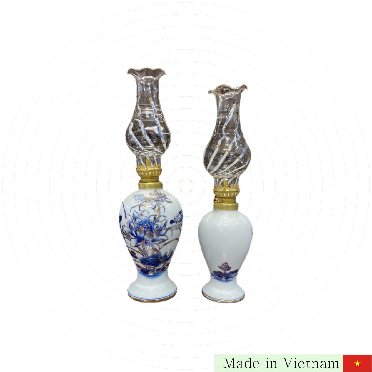 이 멋진 제사용 등잔은 베트남의 명성 높은 바트짱 도자기 마을에서 정성스럽게 제작되었습니다. 품격 있는 푸른 청화(멘 람) 유약 위에 황금색으로 장식된 연꽃 무늬가 화려하면서도 섬세하게 그려져 있어, 전통미와 현대적 세련됨을 동시에 느낄 수 있습니다. 손으로 직접 그려진 꽃무늬는 각각 독특하여 소중한 예배 공간에 고급스러운 분위기를 선사합니다.