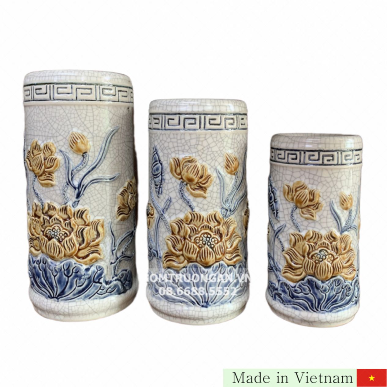 이 트루엑스완 S3 연꽃 문양 향로는 바틀랑(Bát Tràng)에서 전통 수작업으로 만들어진 고급 도자기 제품입니다. 고급 갈라진 유약으로 마감되어 세련된 질감과 고급스러운 광택을 자랑합니다. 높이는 18cm로, 다양한 크기의 제단에 완벽하게 어울립니다.