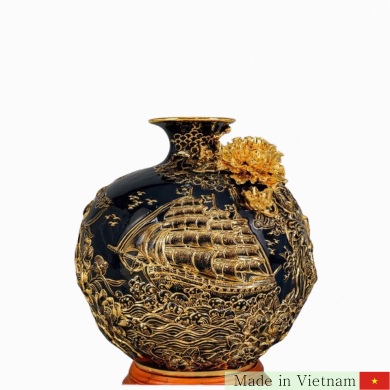 부엌이나 거실, 사무실 어디에 두어도 우아함을 더하는 비늘 훅 록 순범 수이 조 men xanh coban 고급 도자기입니다. 고급스러운 코발트 블루 유약과 금빛 무늬가 조화를 이루어 공간에 품격 있는 분위기를 선사합니다. 이 제품은 베트남 바트 창 의 명품 도자기 수공예로 제작되어 고품질과 내구성을 자랑합니다.