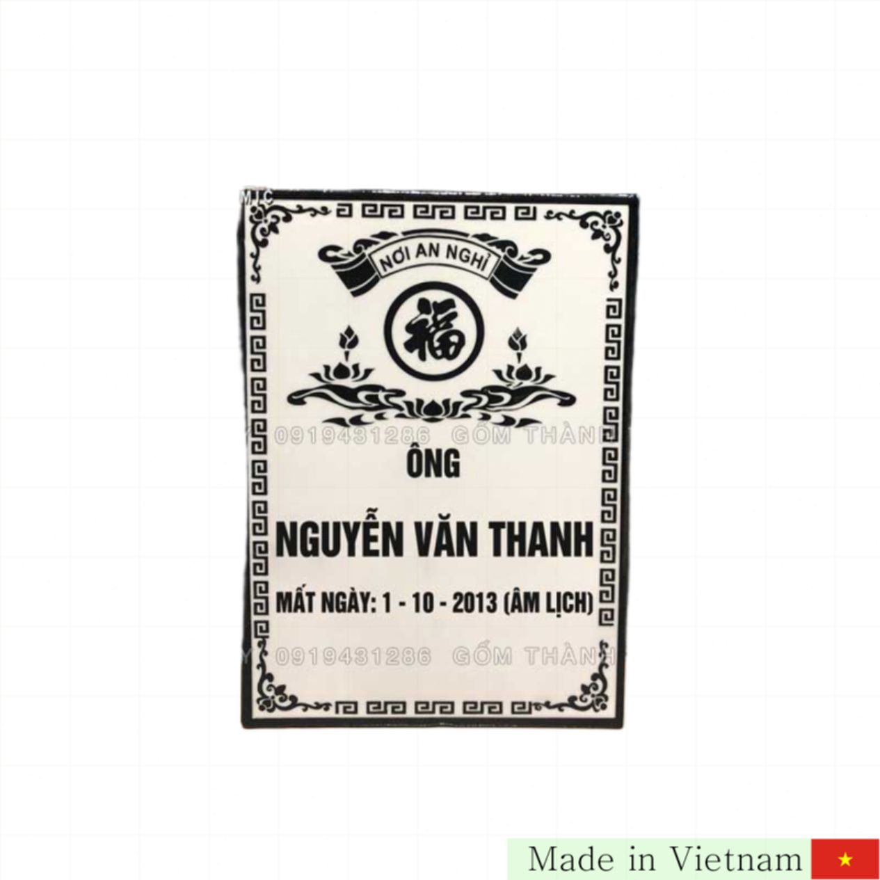 20×30cm 크기의 깨끗한 백색 도자기 묘비는 품격과 내구성을 동시에 갖춘 최고의 선택입니다. 바닷가흙으로 유명한 바트짱(Bát Tràng)에서 만든 이 고급 도자기는 1200도 이상의 고온에서 정성스럽게 구워져 강한 광택과 뛰어난 내구성을 자랑합니다. 그 어떤 날씨에도 변색이나 손상 걱정 없이 오랜 세월을 견딜 수 있습니다.