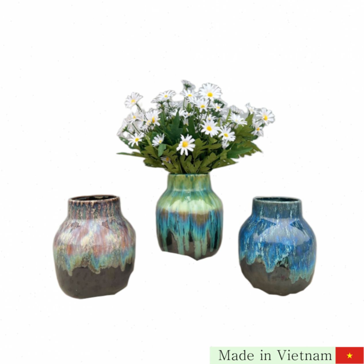 고급스러운 변색 도자기 화병 A001 – 높이 19cm, 입구 9cm, 가장 넓은 부분 14cm