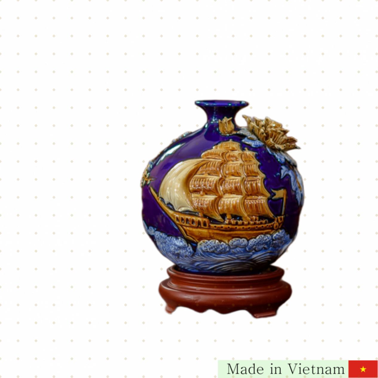 저희가 소개하는 21cm 크기의 명품 **풍수 행운의 도자기, “순풍순풍( thuận buồm xuôi gió)”**은 풍요와 행운을 상징하는 최고의 아이템입니다. 베트남 바짜랑(Bát Tràng) 명장의 손길로 빚어진 이 작품은 정교한 입체 조각과 전통 문양이 돋보이며, 집안이나 사무실 공간에 고급스러운 분위기를 더해줍니다.