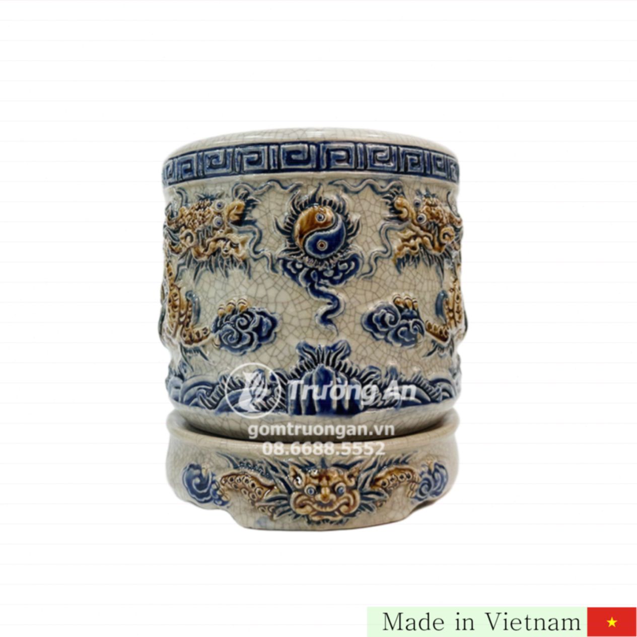 이 제품은 전통적인 기법으로 정교하게 제작된 22cm 직경의 백자 달항아리로서, 특히 아름다운 균열무늬와 섬세한 용 모양 장식이 돋보입니다. 장인의 오랜 숙련된 기술이 깃든 이 상품은 고급 도자기 재질로 만들어져 오래도록 빛과 색이 변치 않아 집안의 제단을 한층 고급스럽게 꾸며줍니다.