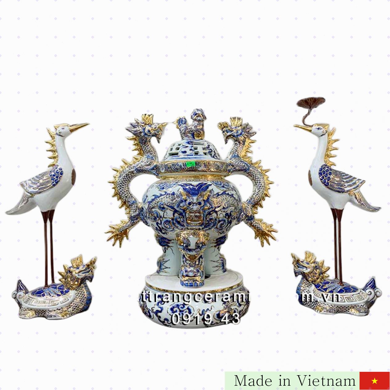 이 특별한 Bát Tràng 도자기 학 향로 세트로 신성하고 평화로운 공간을 만드세요. 지금 바로 구매하셔서 가족의 화목과 행운을 지키세요! 🎁🛒