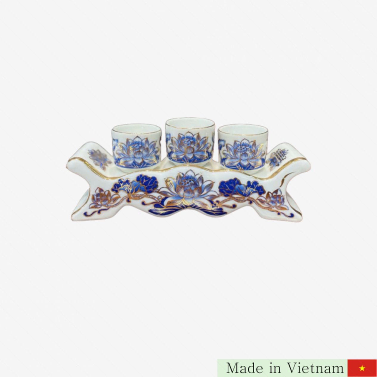 재질: 고품질 백자에 청색과 금색으로 섬세하게 채색된 도자기