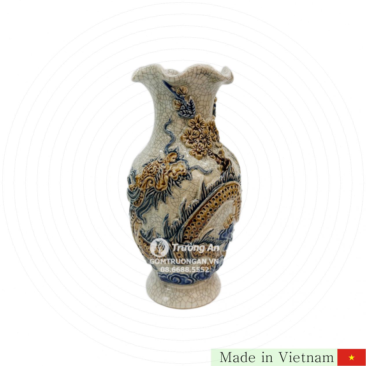이 화병은 정성스럽게 빚어진 세라믹에 크랙 유약이 더해져 한층 더 고급스럽고 독창적인 질감을 느낄 수 있습니다. 전통 용 문양은 신성함과 행운을 상징하며 제사의 존엄함을 극대화합니다. 어디에 두어도 공간을 품격 있게 꾸며줍니다.