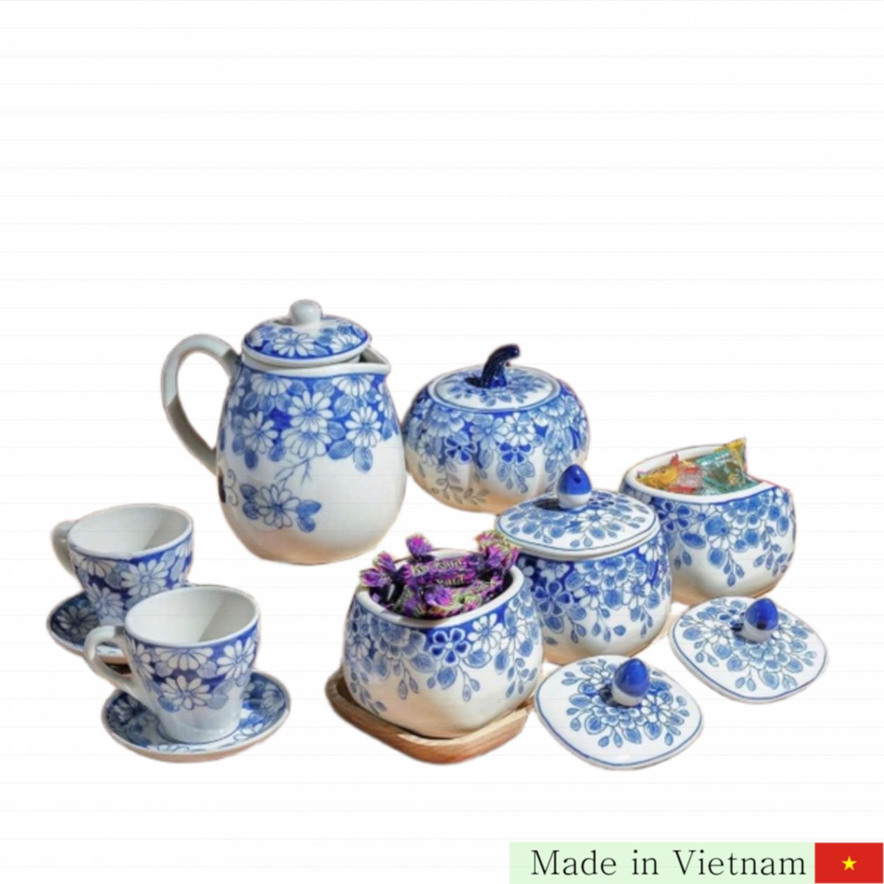 지금 바로 구매하세요! 고품질과 아름다움이 어우러진 Bát Tràng 도자기 찬 통 세트로 여러분의 공간에 특별함을 더하세요. 🌸✨