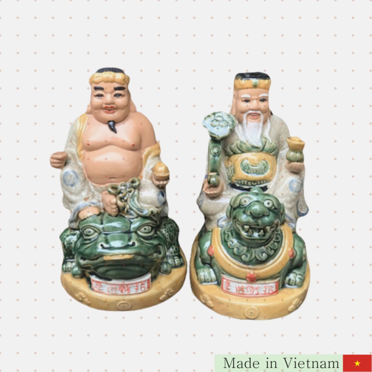 우리의 고품격 도자기 제품은 베트남 전통 도자기의 명가, 바트짱(Bát Tràng)에서 제작한 토지신과 행운의 황금개구리 상 세트입니다. 26cm의 아담한 크기로 책상, 선반, 또는 신단 위에 쉽게 배치할 수 있어 공간 활용도가 뛰어납니다. 이 상징적인 도자기 세트는 재물과 행복을 불러오는 특별한 의미를 지니고 있습니다.