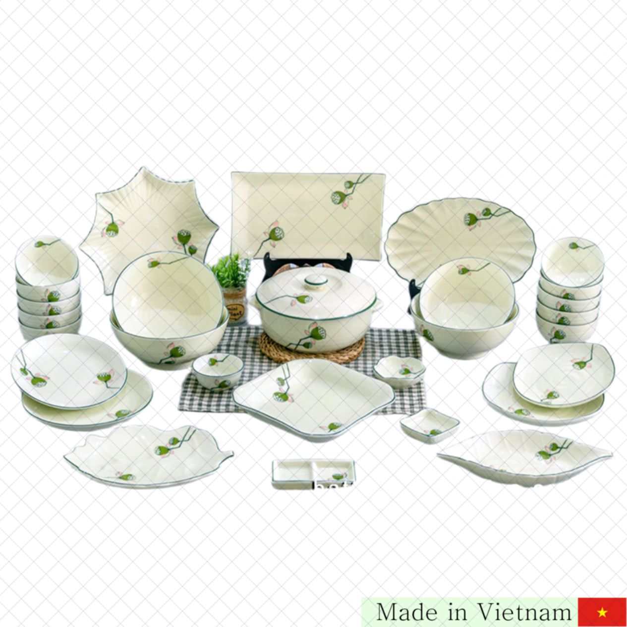 고급 연꽃 문양 크림 유약 29종 식기 세트 🍽️