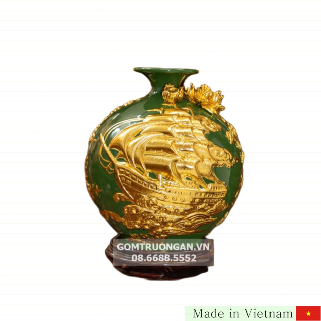 두 가지 행운을 가져오는 황금 장식의 30cm 풍수 도자기 화병, 순풍만리(Thuận Buồm Xuôi Gió) 🌿✨
