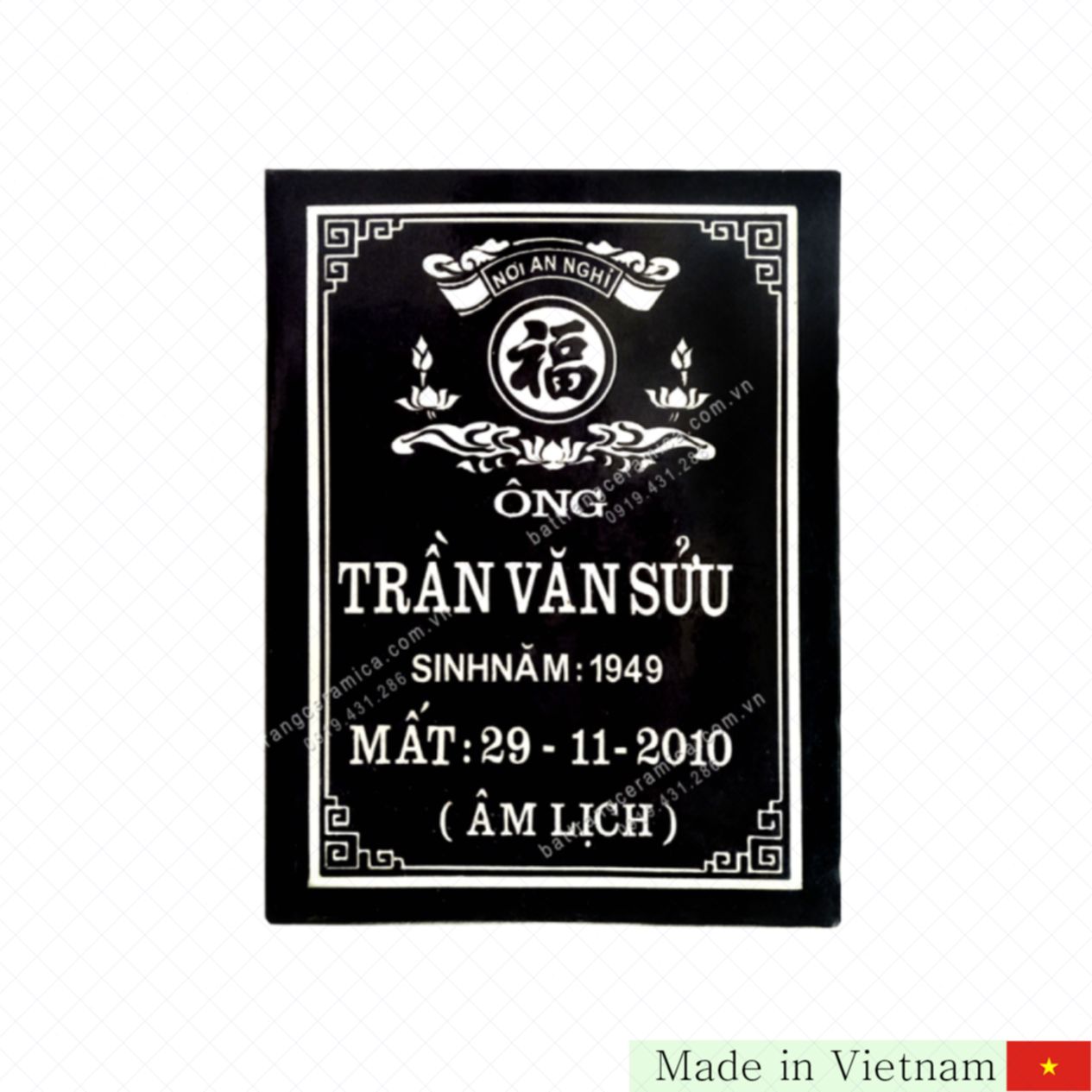검은색 바탕의 고급 자기 비문, 크기 30 x 40cm 🏺✨