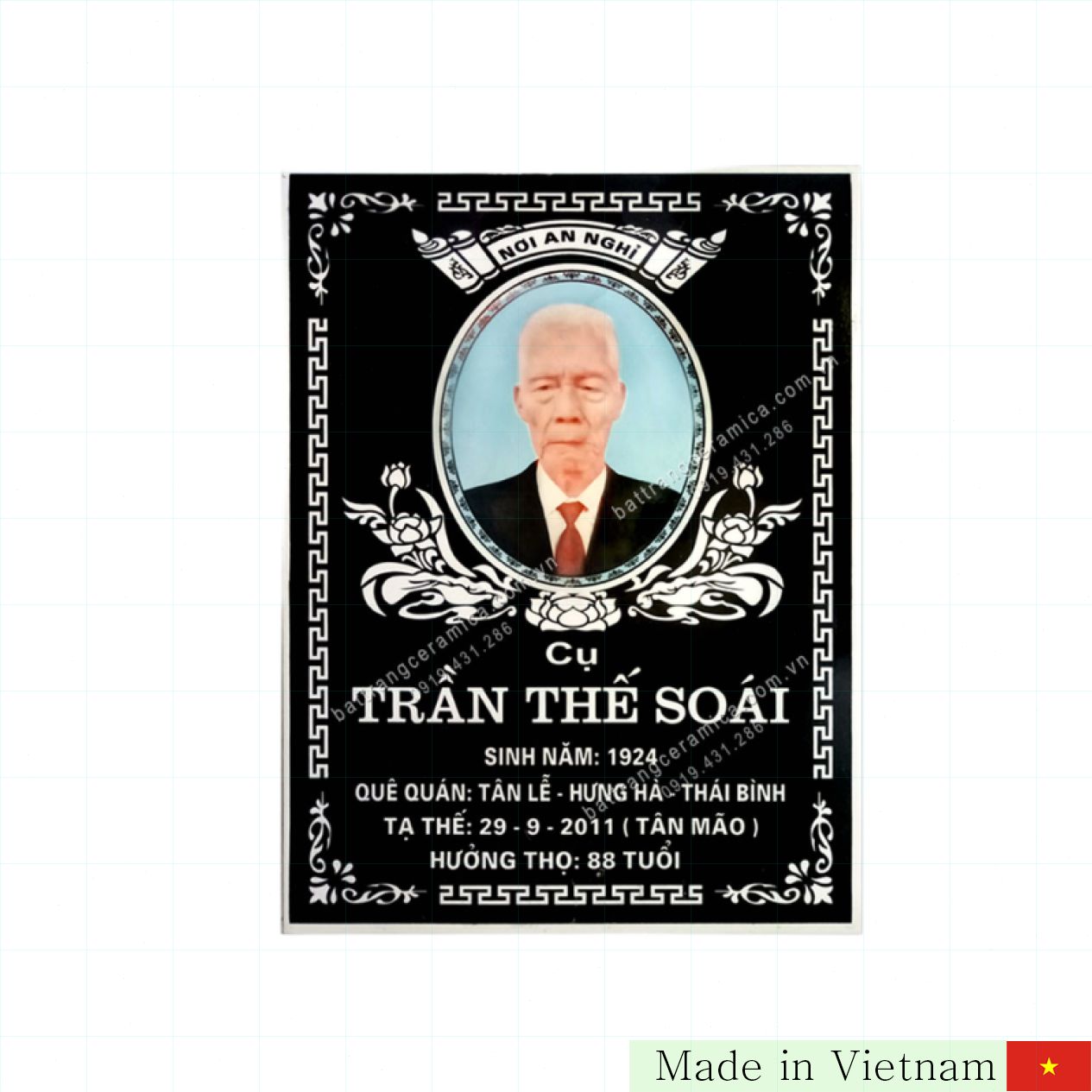 이 30 x 40cm 크기의 고품질 도자기 묘비는 정교한 세라믹 소재로 제작되었으며, 전통적인 바트쨍(Bát Tràng) 도자기의 명성을 그대로 담았습니다. 고온 1200도에서 정성스럽게 구워내어 견고하고 내구성이 뛰어나, 오랜 세월 변색이나 손상 걱정 없이 사용할 수 있습니다.