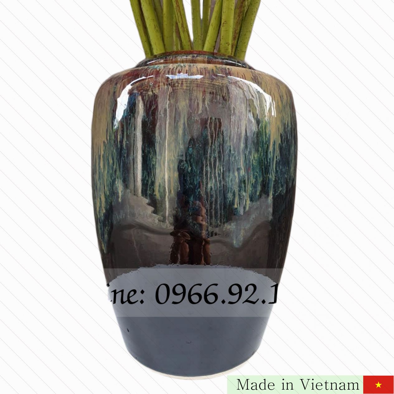 높이 33cm의 화변 도자기 화병은 독특한 디자인과 고급스러운 색감으로 공간에 특별한 멋을 더합니다. 불꽃처럼 변화하는 네 가지 색상의 유약이 조화를 이뤄 세련됨과 균형감을 자아내어 시선을 사로잡습니다.