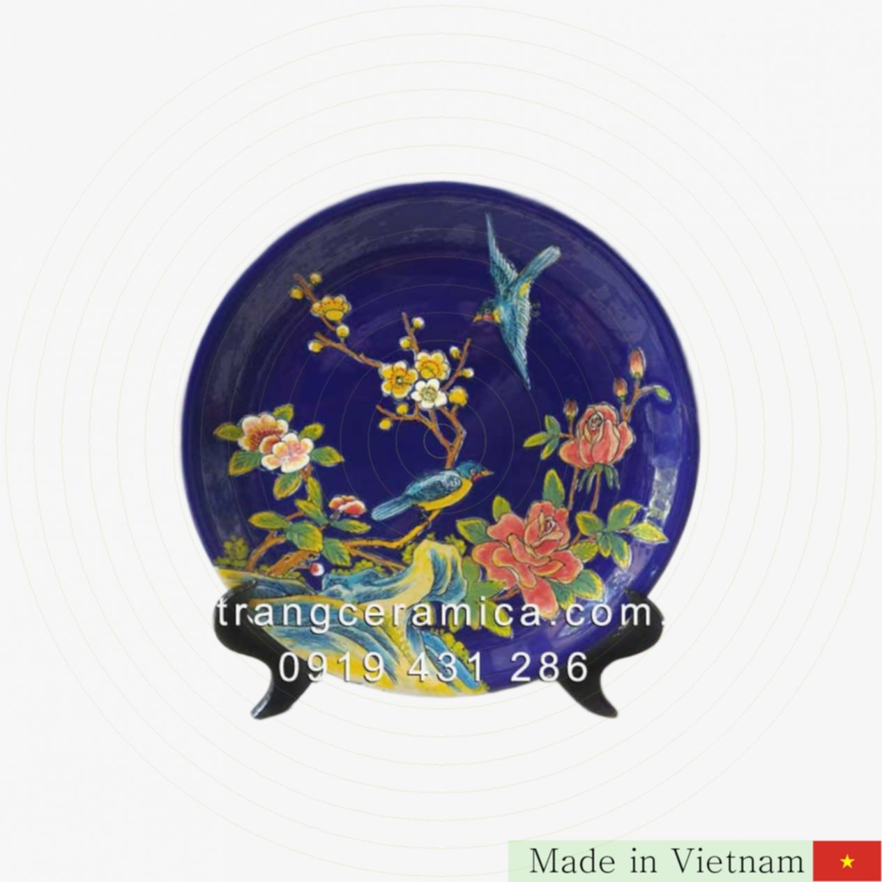 이 아름다운 35cm 크기의 희척등매 도자기 접시는 전통 바트쨩(Bát Tràng) 장인들의 섬세한 손길로 완성되었습니다. 희척등은 행운과 부를 상징하는 새로서, 매화 가지에 앉아 있는 모습이 그려져 있어 풍수적으로 좋은 의미를 담고 있습니다. 이 작품은 집안이나 사무실 분위기를 더욱 고급스럽고 따뜻하게 만들어줄 최고의 인테리어 소품입니다.