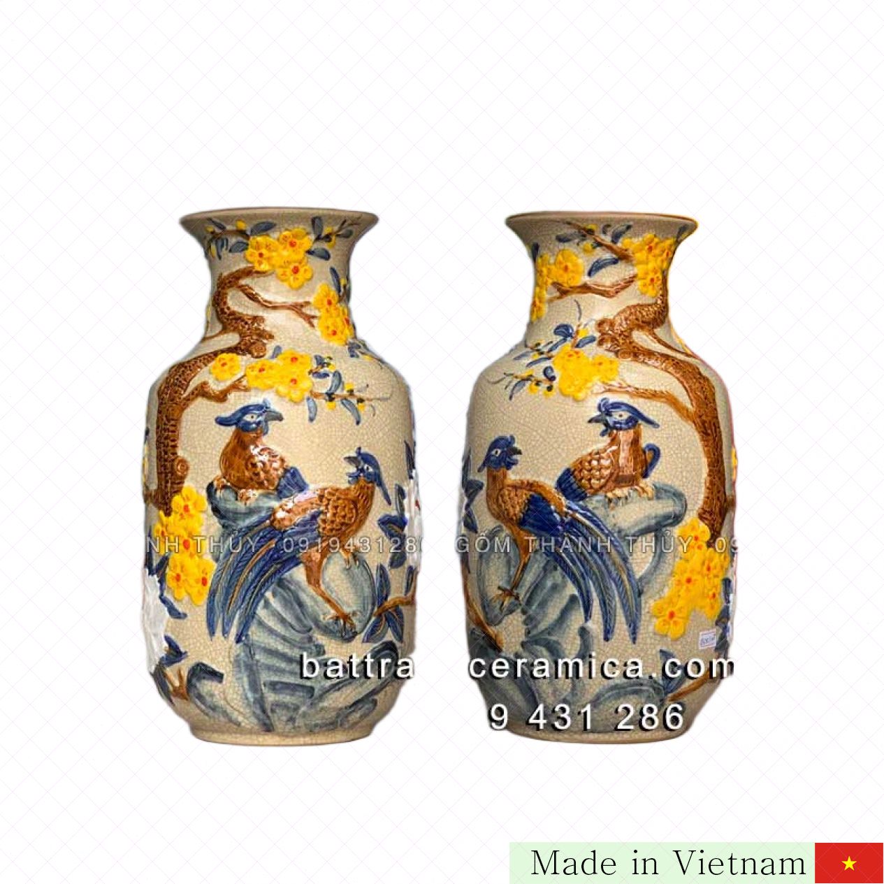 전통 장인의 손길이 깃든 로크 빈 양각 꿩과 매화 35cm는 1200도 고온에서 구워져 뛰어난 내구성을 자랑합니다. 그 위에 바트짱 특유의 고급스러운 균열 유약이 입혀져 고풍스러운 멋을 완성합니다. 매끈하면서도 깊은 감성을 자아내는 이 도자기는 오랜 전통을 계승하는 수공예 기술로 모든 무늬가 섬세하게 수작업되었습니다.
