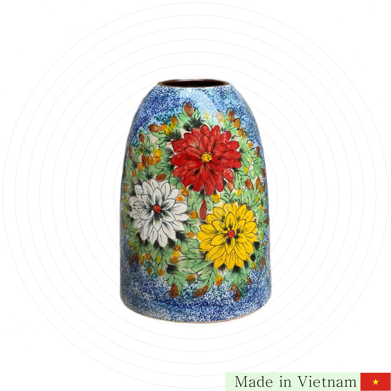 Bát Tràng의 전통 도예 장인이 수작업으로 그려내는 이 꽃병은 예술적 가치와 실용성을 동시에 갖췄습니다. 매끄러운 표면과 견고한 재질로 오랜 시간 사용해도 변형이 없습니다. 이 작품 하나로 집안 분위기를 한층 밝고 세련되게 연출할 수 있습니다.