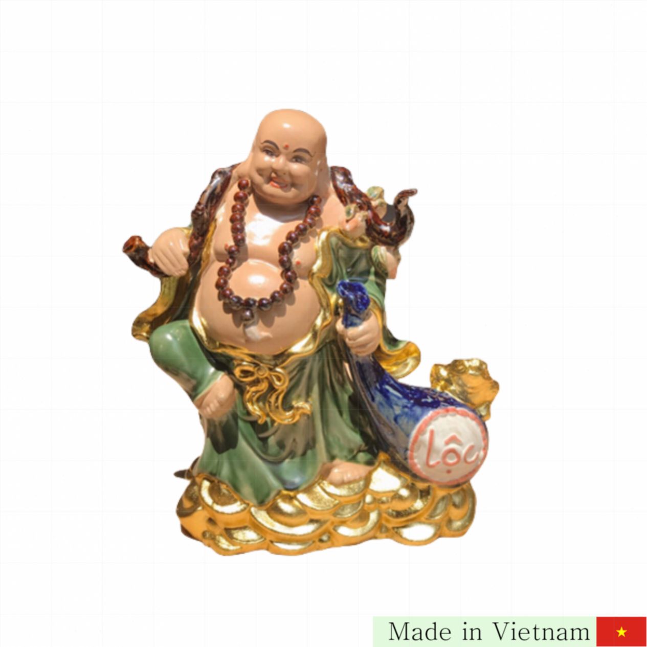 이 40cm 높이의 디럭스 미륵상은 베트남 바트장(Bát Tràng) 유명 장인들이 정성껏 수작업으로 제작했습니다. 둥근 배와 환한 미소가 살며시 행복과 긍정의 에너지를 전해 줍니다. 전통미와 현대적 감각이 완벽하게 조합된 작품으로, 집 안 공간에 풍요와 행운을 불러옵니다.