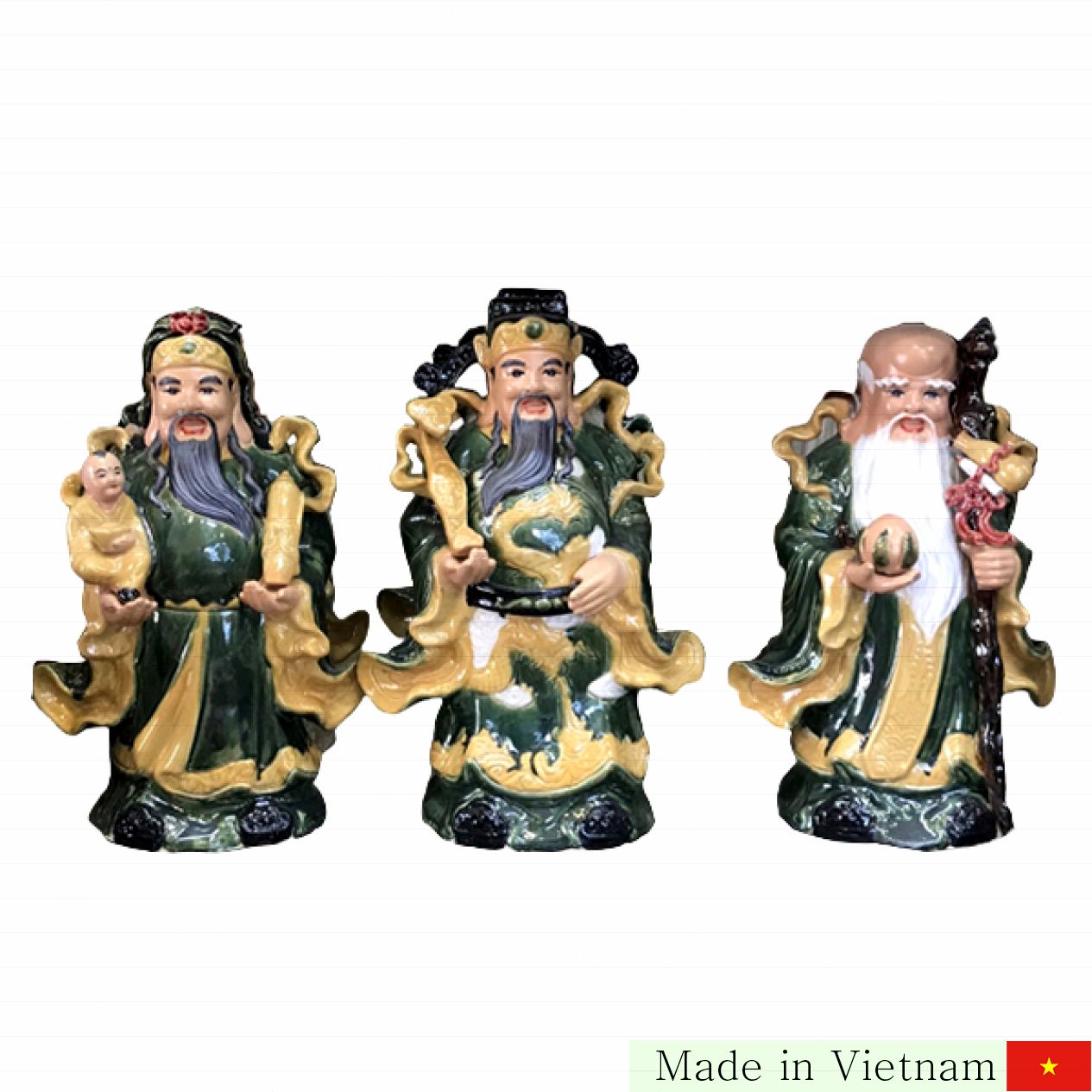 푸록로 도자기 조각상은 한국의 전통적인 풍수 아이템으로, 행복, 재물, 건강을 상징하는 세 분의 신성한 모습입니다. 높이 40cm의 컴팩트한 크기로 어디에나 쉽게 배치할 수 있어 공간을 아름답고 의미 있게 꾸며줍니다. 이 제품은 고급 비취빛 유약과 금빛으로 화려하면서도 고급스러운 분위기를 자아냅니다.