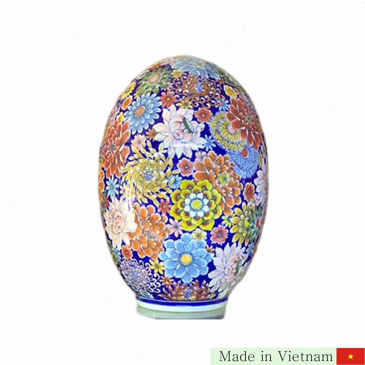 바트짱의 최고급 라미네이트 도자기로 제작된 이 풍수 알은 집안의 거실이나 사무실에 놓으면 행운과 번영을 불러옵니다. 각기 다른 꽃들의 아름다운 문양이 섬세하게 그려져 있으며, 풍요로운 성장과 성공을 상징합니다.