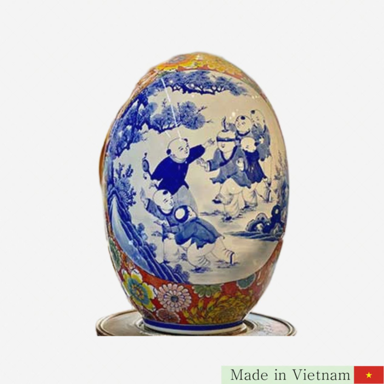 45cm 크기의 정교한 이경 백아기 도자기 풍수 달걀은 전통 바트장(Bát Tràng) 공예의 정수를 보여주는 고급 제품입니다. 이 아름다운 도자기 작품은 탁월한 장인 정신과 세밀한 손길이 돋보이며, 집안의 분위기를 한층 우아하고 품격 있게 만들어 줍니다.