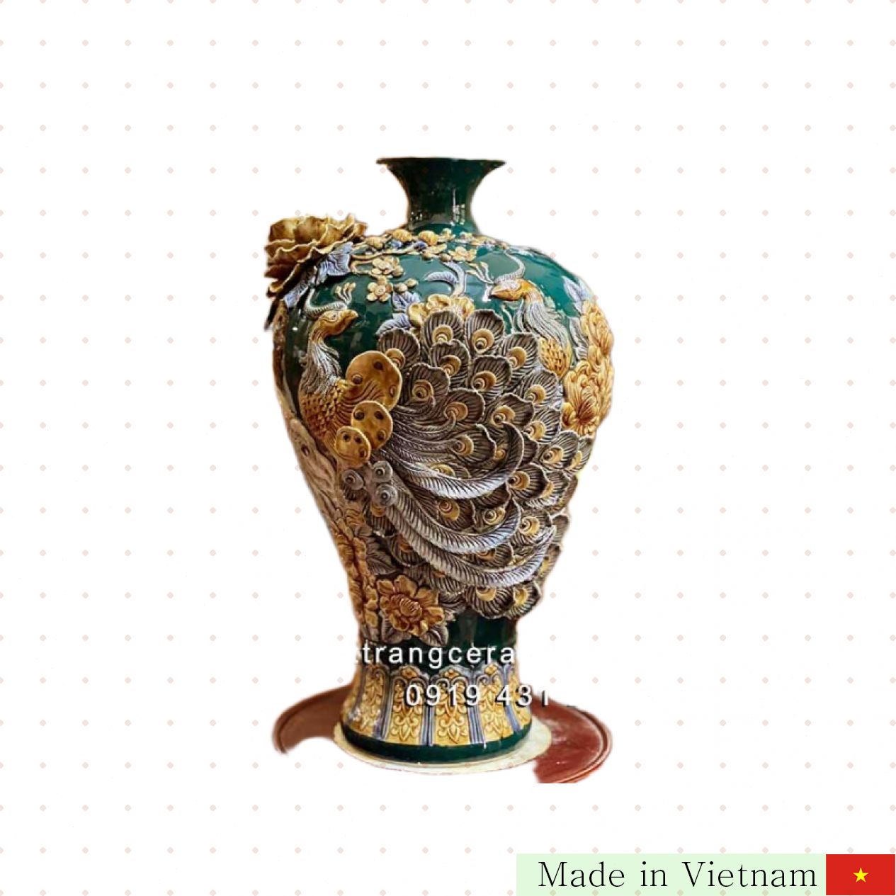 마이 병 적록은 화려한 공작과 복숭아꽃을 입체적으로 장식한 48cm 크기의 고급 도자기 제품입니다. 이 아름다운 작품은 단순한 인테리어 소품을 넘어, 재물과 행운을 끌어들이는 풍수 보물로 큰 사랑을 받고 있습니다. 집이나 사무실에 놓으면 긍정적인 에너지가 가득하며 성공과 번영을 돕습니다.