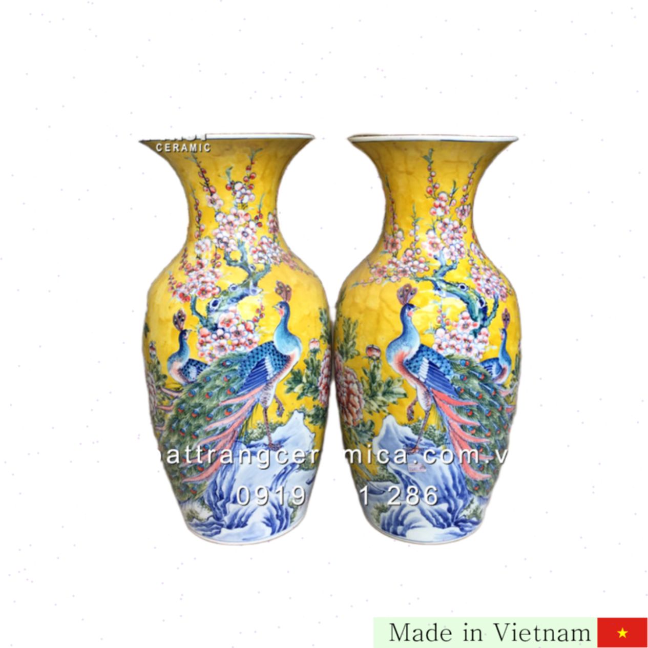 이 50cm 높이의 황금 배경 공도 그림 도자기 화병은 바트짱 마을 장인들의 섬세한 손길로 완성된 걸작입니다. 공작과 복숭아꽃 두 자연의 아름다움을 조화롭게 담아내어, 가정에 새로운 활력과 번영을 선사합니다. 이 화병은 여러분의 명예와 성공, 그리고 행복한 부부의 아름다움을 상징합니다.