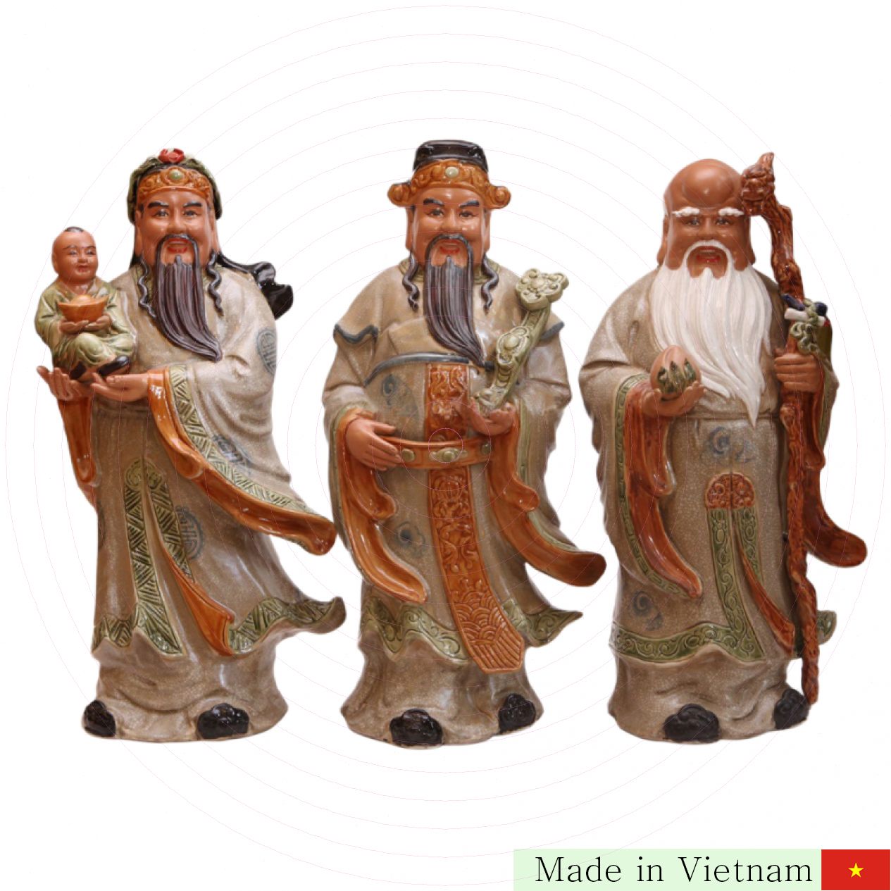 이 세 인물은 베트남과 동아시아 문화에서 가장 존경받는 복덕의 표현으로, 가정이나 사무실에 두면 안정과 번영을 기원하는 의미가 큽니다.