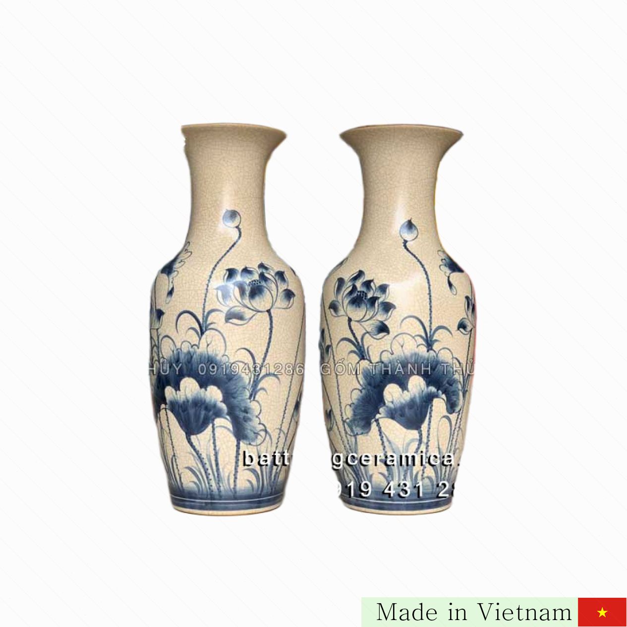 60cm 높이의 고품격 연꽃 무늬 균열 유약 병은 전통적인 분위기와 세련된 디자인이 조화를 이룬 아름다운 장식품입니다. 이 제품은 단순한 장식용을 넘어, 집안의 운을 불러오고 재물을 지키는 풍수 인테리어 아이템으로도 손색없습니다.