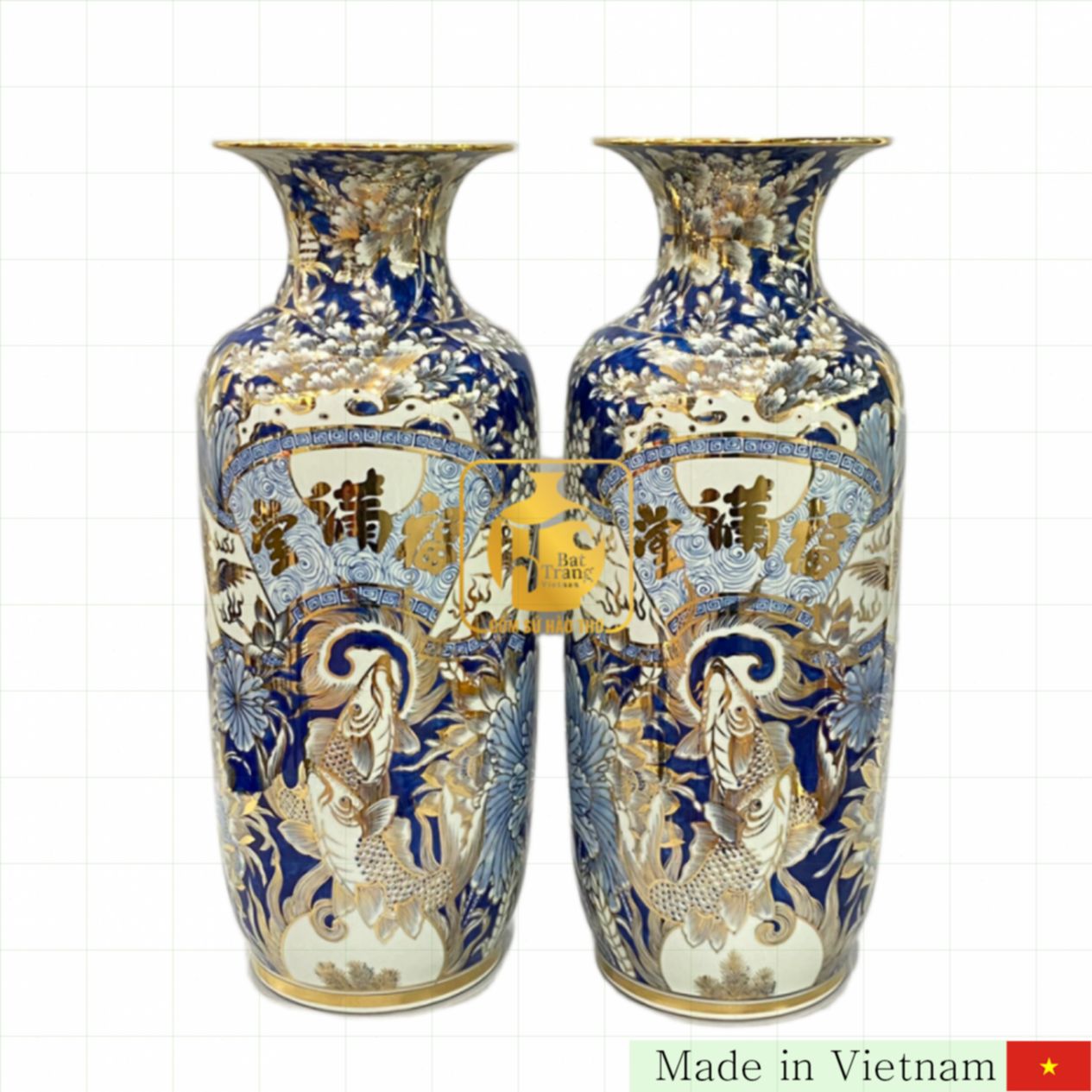 이 도자기 작품은 베트남 바트랑에서 만들어졌으며, 고유의 전통 도자기 기술과 현대적인 감각이 어우러진 명작입니다. 24K 금으로 섬세하게 장식된 고풍스러운 청색 유약과 풍수학에 따른 색채 조합이 조화롭게 표현되어 있어 집이나 사무실 어느 곳에도 품격을 더합니다. 크기는 60cm로 존재감이 확실하며, 풍수 인테리어를 위해 특별히 디자인되었습니다.