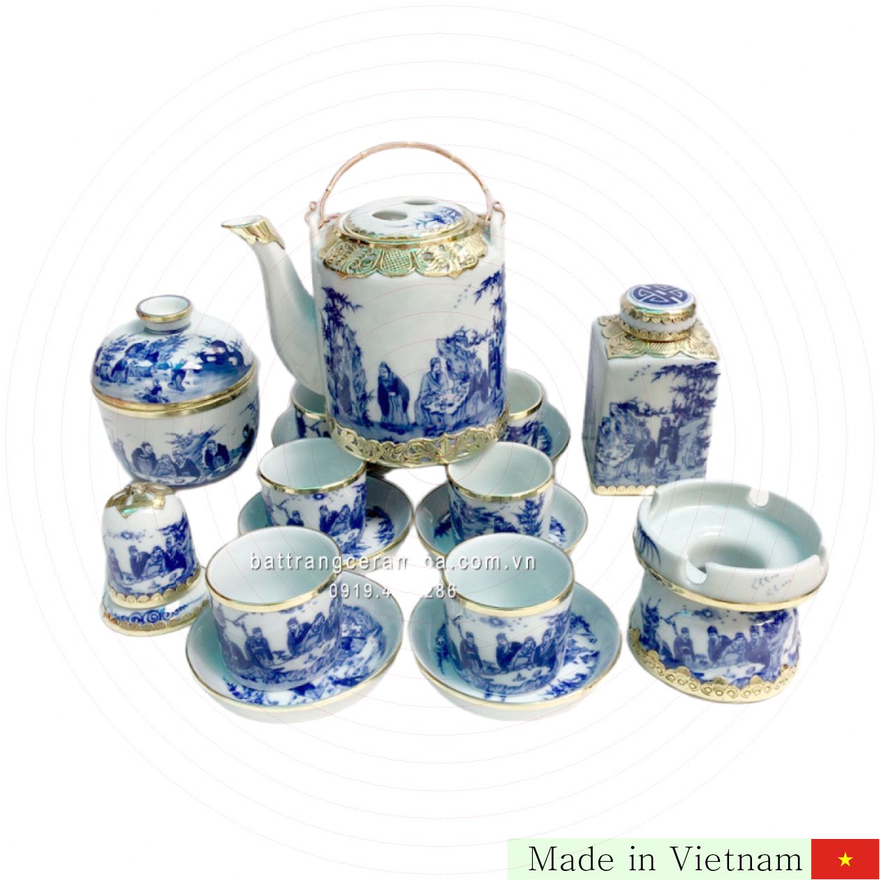죽림칠현 도자기 다기 세트는 베트남 전통 바트짱 도자기 장인의 정성이 깃든 명품입니다. 13cm의 높이와 10cm의 넓은 몸통으로 우아한 디자인과 편리한 사용감을 자랑합니다. 구리가 감싼 손잡이가 고급스러움을 더해 주며 오랜 시간 차를 우리기에 적합합니다.