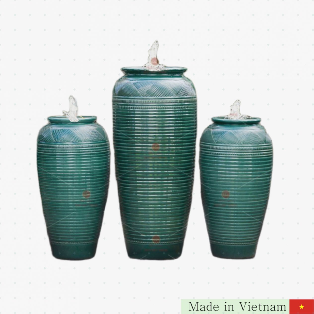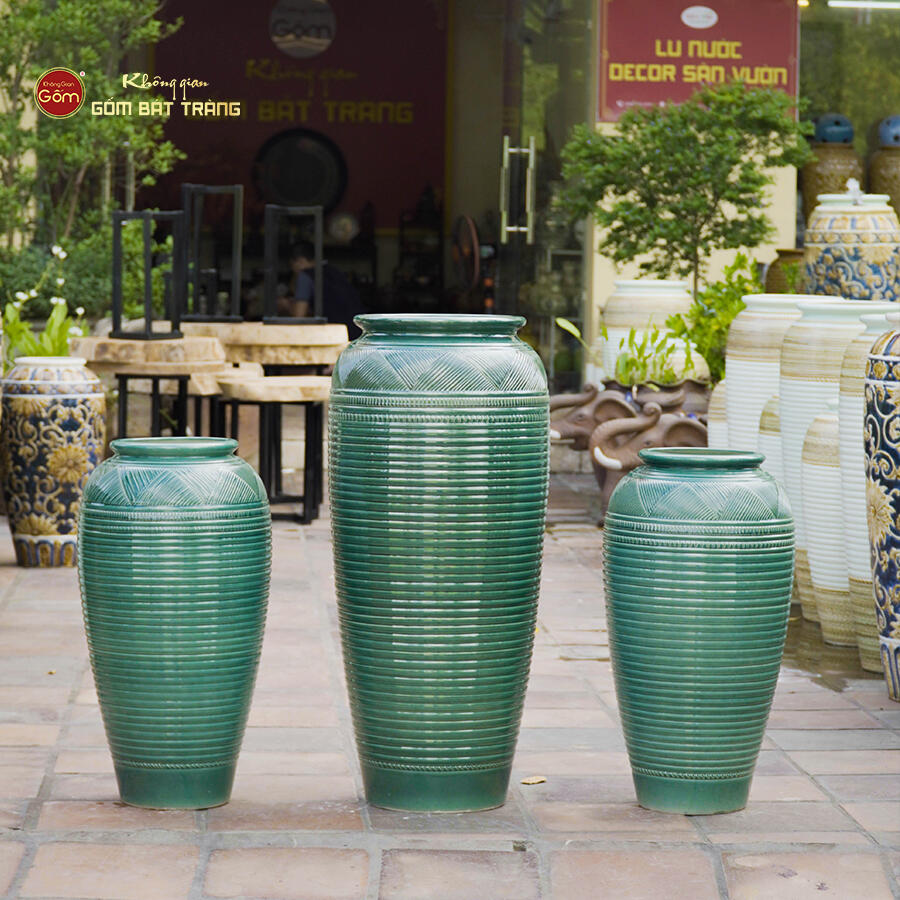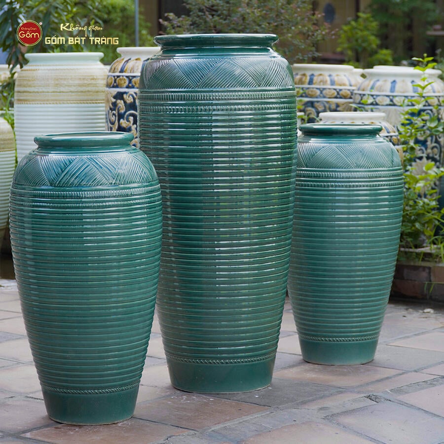 이 세트는 100% 바뜨짱(Bát Tràng) 도자기로 만들어져 뛰어난 내구성과 고급스러운 질감을 자랑합니다. 대형 항아리의 높이는 95cm, 소형 항아리는 72cm로 균형 잡힌 비율과 존재감을 제공합니다. 흙과 고령토를 엄선하여 1200도 고온에서 정교하게 구워냈기에 오랜 시간 변형 없이 사용할 수 있습니다.