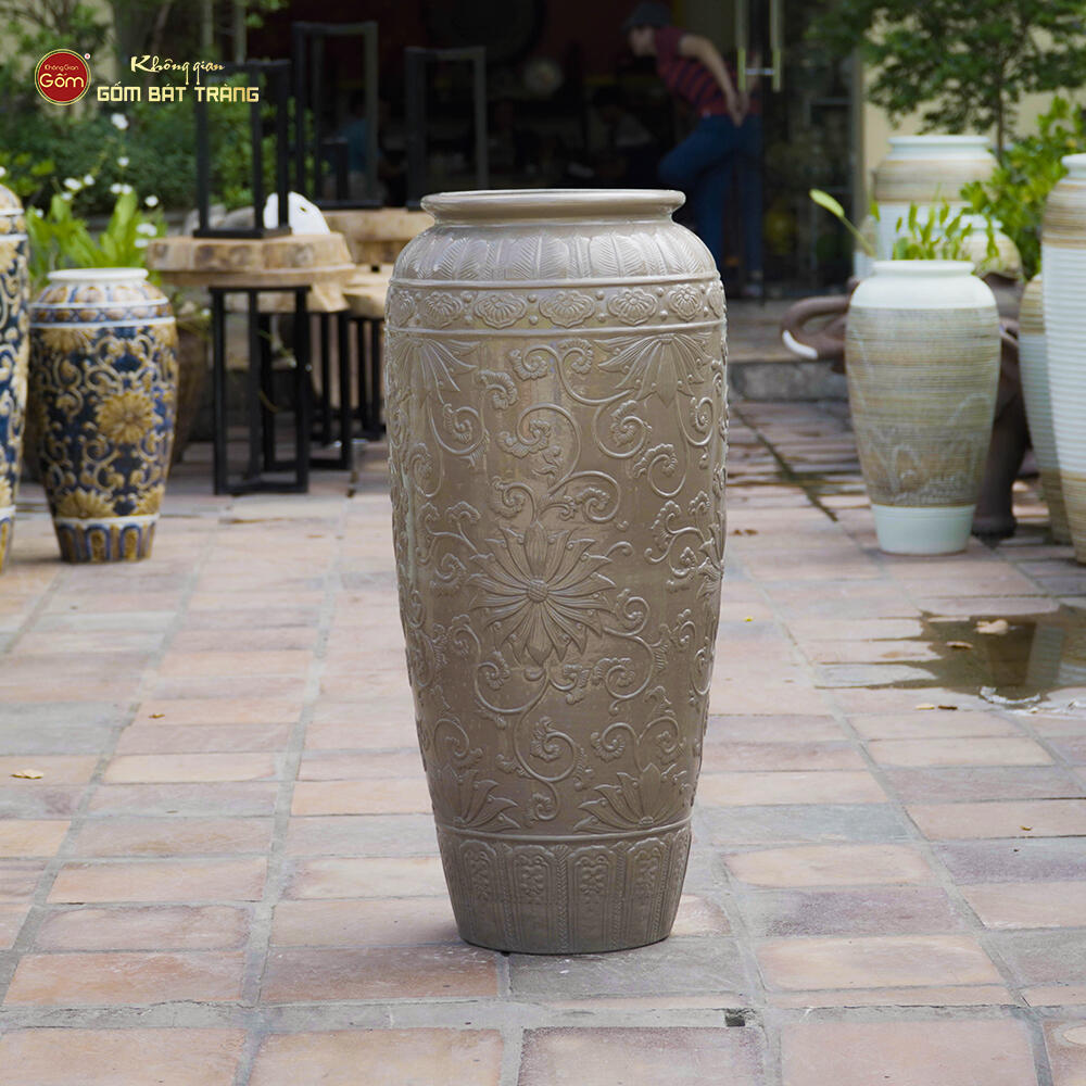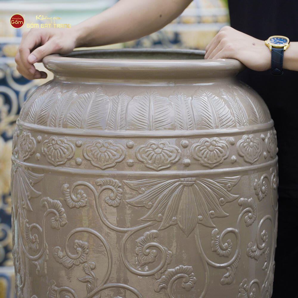 연회색 빛의 고급 세라믹으로 만들어진 이 풍수 물항아리는 고유한 꽃무늬 패턴으로 우아함을 자아냅니다. 95cm의 높이와 32cm의 넓은 입구 사이즈는 실내외 어느 공간에도 잘 어울립니다. 전통과 현대미가 조화를 이루는 이 제품은 집 안의 분위기를 세련되게 바꾸어 줄 최고의 선택입니다.