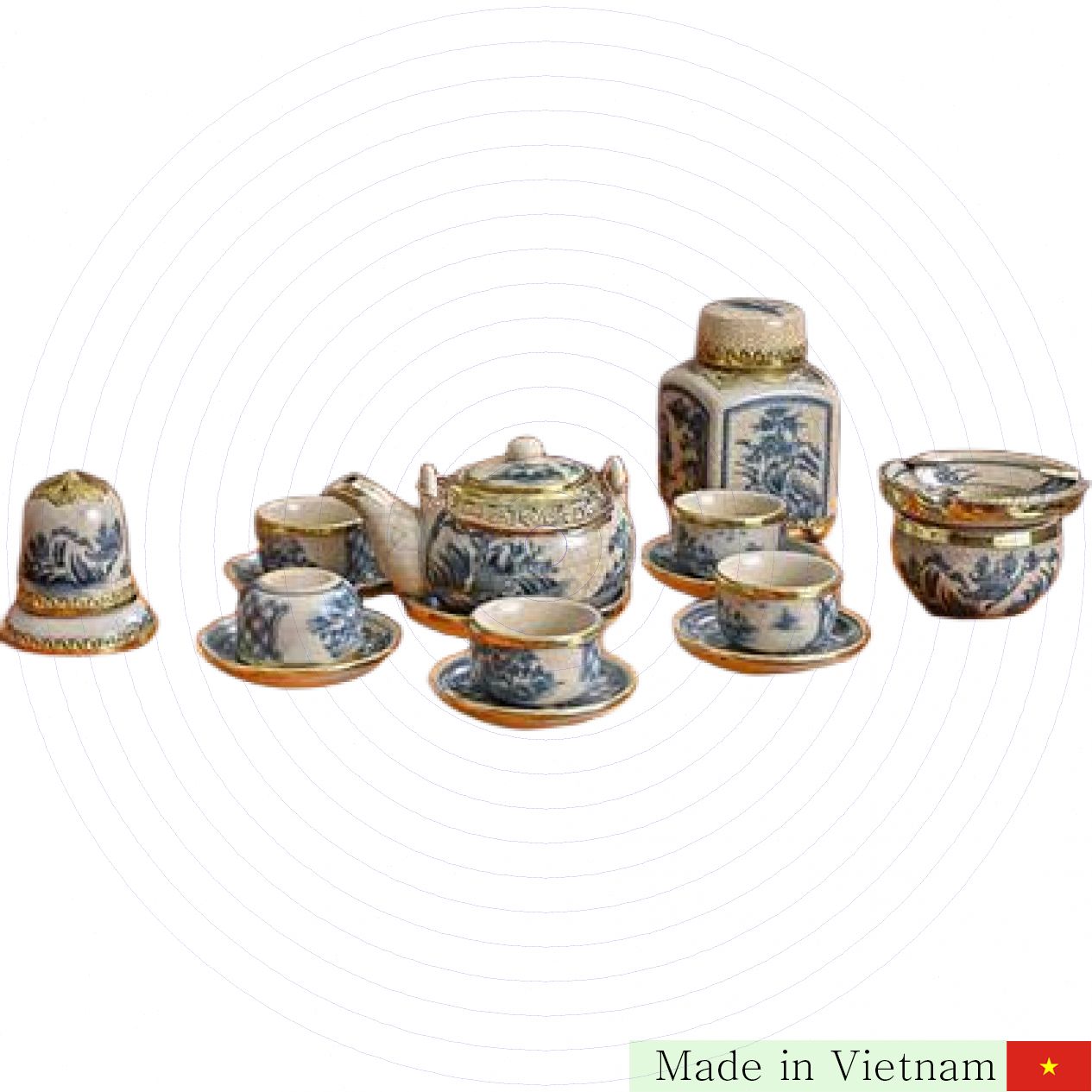 저희는 전통과 현대가 조화를 이루는 바트짱(Bát Tràng) 도자기 중에서도 동으로 세련되게 마감한 둥근 차 세트를 소개합니다. 이 세트는 고급스러운 멋과 실용성을 모두 갖춰 차를 즐기는 모든 분께 완벽한 선택입니다. 뛰어난 장인정신으로 빚어진 바트짱 도자기와 동 소재가 만나, 특별한 분위기를 연출해 줍니다.