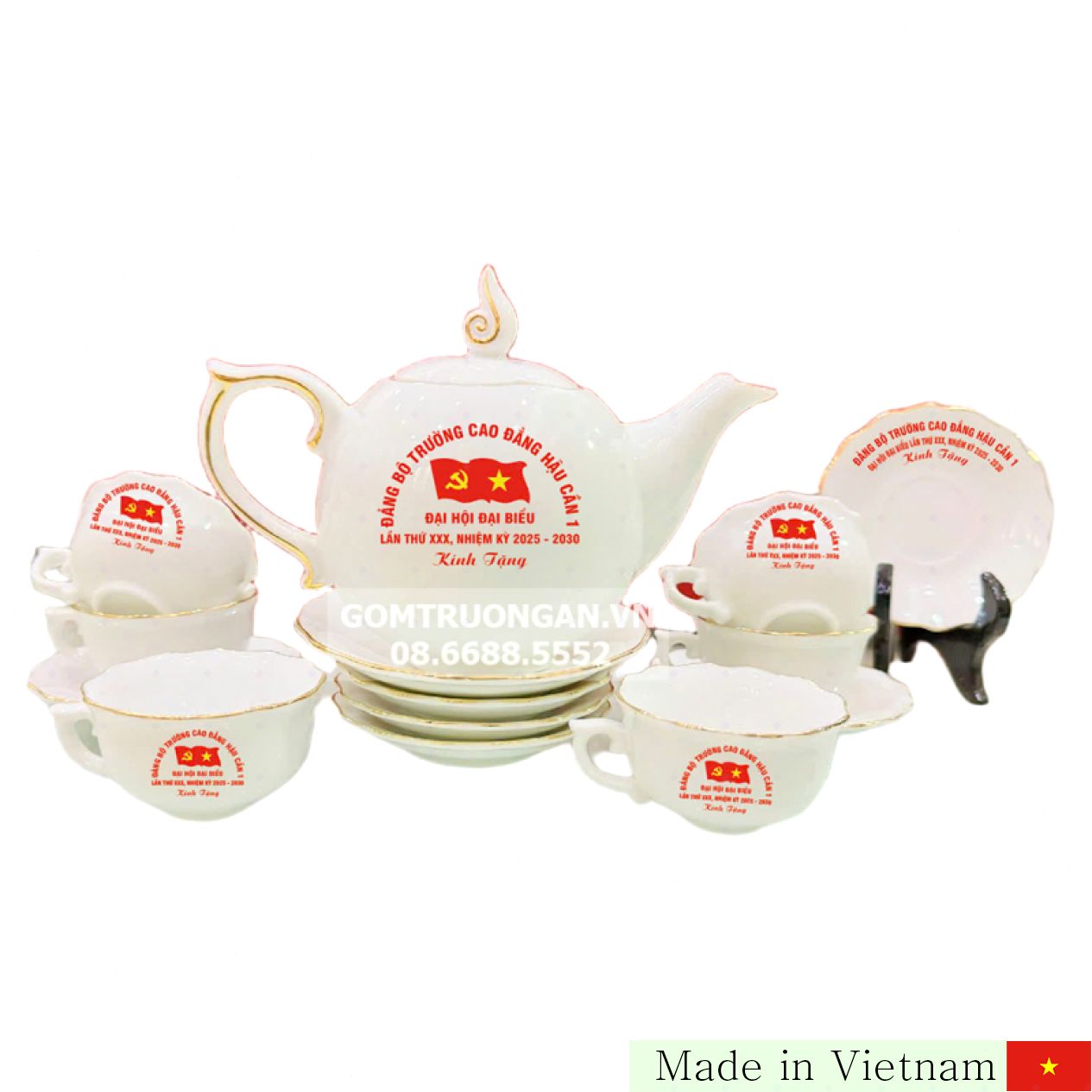 이 제품은 바트짱 전통 도자기 기술이 완벽하게 녹아든 15종 세트의 로고 인쇄 찻잔 세트입니다. 단순하면서도 고급스러운 금색 선으로 장식된 디자인이 돋보이며, 고품질 도자기로 뛰어난 내구성과 아름다움을 자랑합니다.