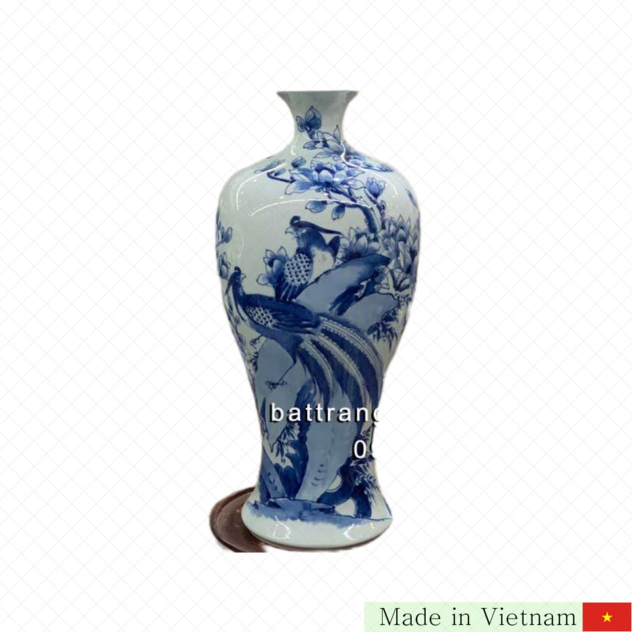 Mai bình tích lộc chim Trĩ hoa lan cao 45cm는 고급 바트짱(Bát Tràng) 도자기로 제작된 예술 작품입니다. 이 제품은 45cm의 세련된 높이와 정교한 꽃과 새 모티브가 돋보여 집안 분위기를 한층 더 우아하게 만들어 줍니다. 최고의 도자기 재료와 전통 기법으로 탄생해 내구성이 뛰어나며, 섬세한 금색 드로잉이 고급스러움을 더합니다.