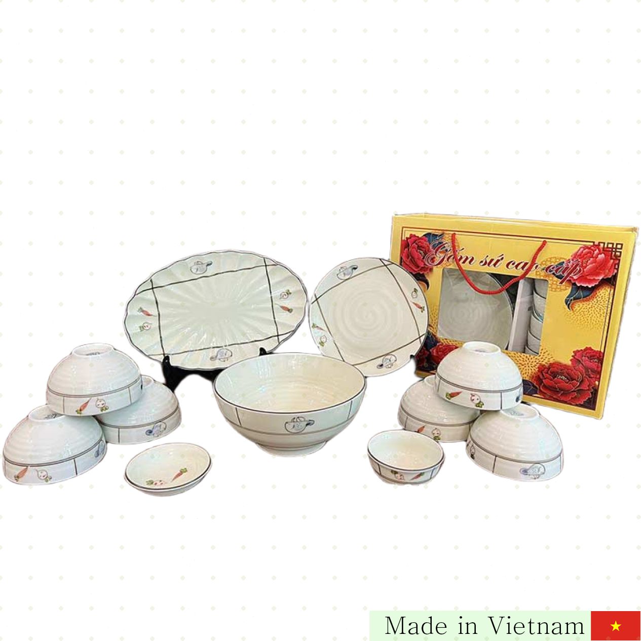 전통 바트창(Bát Tràng) 도자기의 고급 크림 유약과 아름다운 채소 무늬가 돋보이는 11피스 식기 세트입니다. 최고 품질의 소재로 제작되어 1200도 고온에서 소성 처리해 뛰어난 내구성을 자랑하며, 특히 아이들도 안심하고 사용할 수 있는 건강한 안전성을 보장합니다. 수작업으로 전통 방식의 정성스러운 핸드페인팅이 더해져 예술적 가치까지 만족시키는 명품 제품이에요.