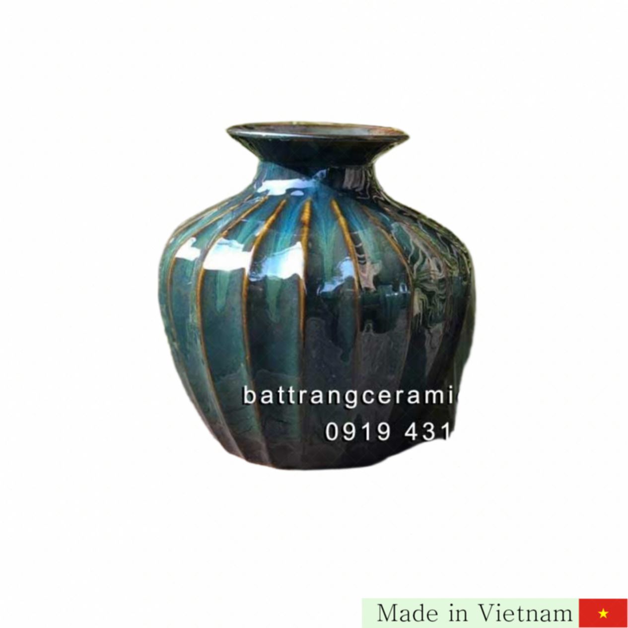 저희 제품은 정성껏 만들어진 고품질 바트짱 도자기입니다. 집안의 분위기를 바꾸고 싶다면 이 청옥빛 뮤이 화병을 지금 바로 구매하세요! 🌟🌷
