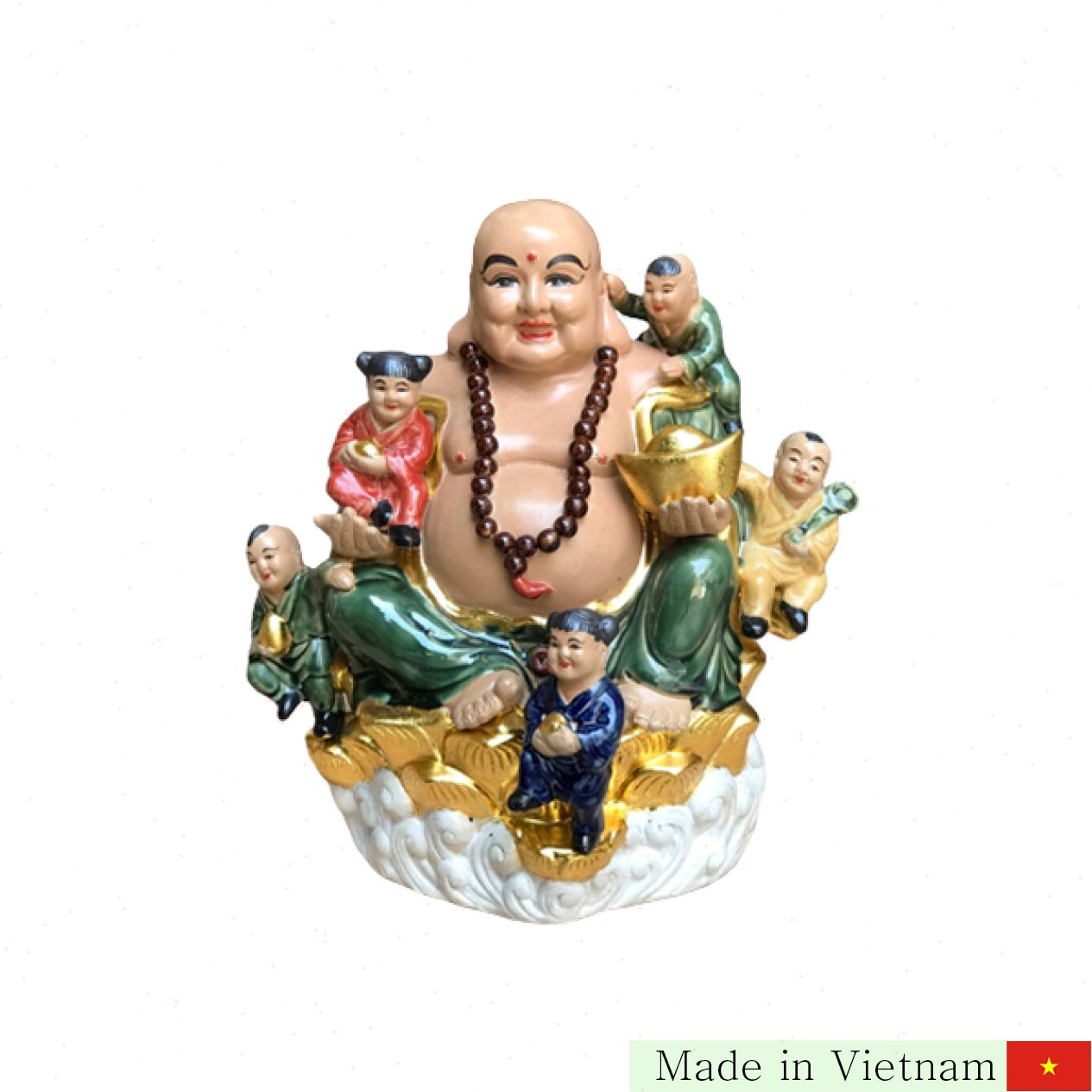 이 부처상은 풍수에서 금전운과 평안을 상징하며, 가정의 행복과 번창을 기원하는 의미를 담고 있습니다. 다섯 아이들이 나타내는 '오봉'은 ‘복, 록, 수, 강, 녕’의 다섯 가지 복을 뜻하여 완벽한 삶의 원천이 됩니다.