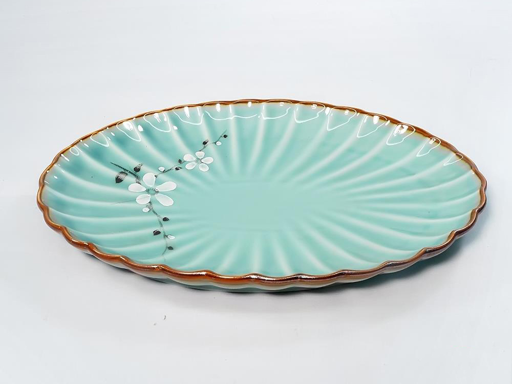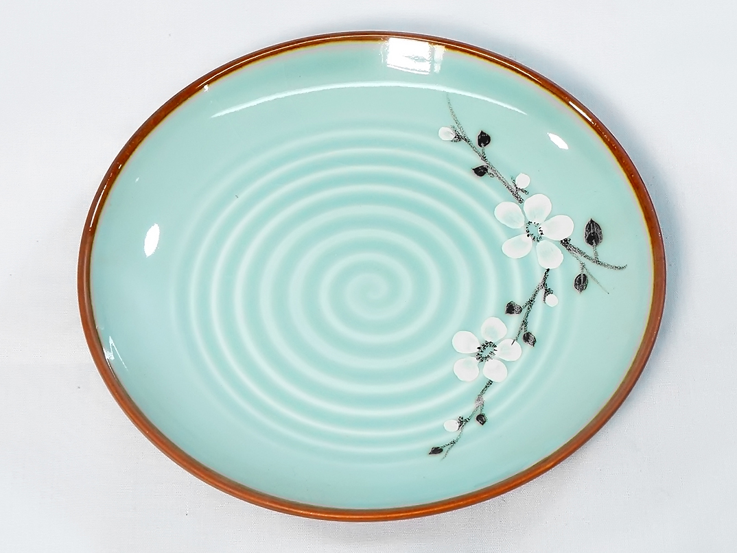 청옥색 유약은 매끄럽고 광택이 뛰어나며, 손으로 그린 섬세한 흰 벚꽃 무늬가 고급스러운 분위기를 자아냅니다. 진한 붉은 갈색 선으로 마무리한 포인트 디테일이 더욱 세련되고 눈길을 사로잡습니다.