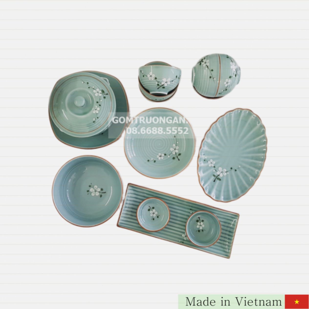 Bát Tràng의 고품질 청옥빛 도자기 식기 세트, 벚꽃 화이트 14종 세트는 세련되고 우아한 주방 공간을 완성해 줍니다. 정교하고 섬세한 벚꽃 무늬가 청옥빛 광택과 어우러져 뛰어난 미적 가치를 자랑하며, 일상 사용부터 특별한 손님 접대까지 완벽한 선택입니다.
