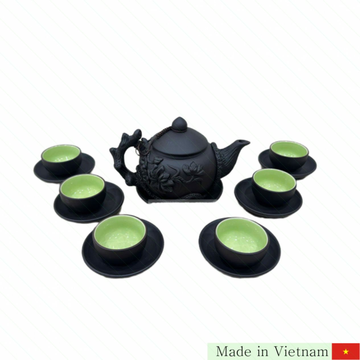 Bộ ấm chén tử sa đen đắp nổi hoa sen lòng xanh은 전통의 아름다움과 현대적인 고급스러움을 완벽하게 담아낸 제품입니다. 이 세트는 베트남 바트짱(Bát Tràng)에서 정성껏 제작되어 뛰어난 품질과 디자인을 자랑하며, 차를 즐기는 모든 이들에게 최고의 선택이 될 것입니다.