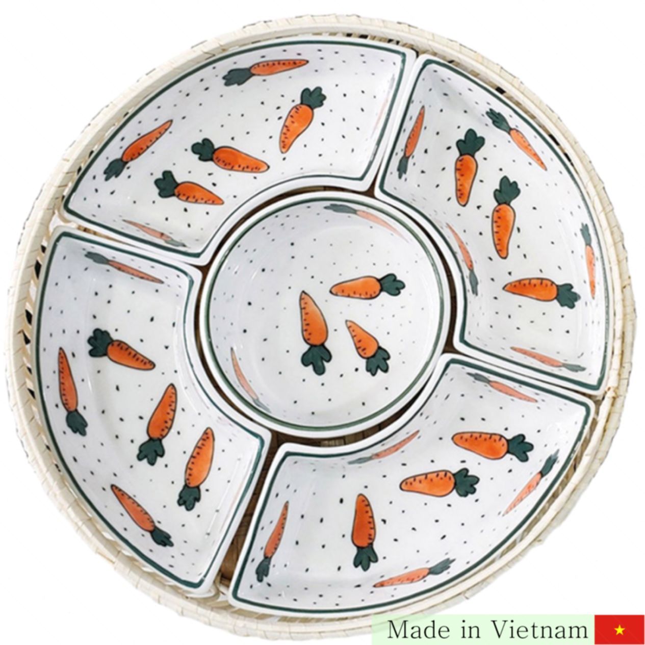 도자기와 천연 대나무가 어우러진 화이트 캐롯 문양의 고급 찬합 세트를 소개합니다. 이 제품은 장인 정신이 깃든 바트짱 도자기의 섬세한 손길과 정교한 공예 기술로 완성되어 집안에 우아함과 품격을 더합니다. 특별한 명절, 가족과 손님들을 위한 최고의 선택입니다. 🍊✨