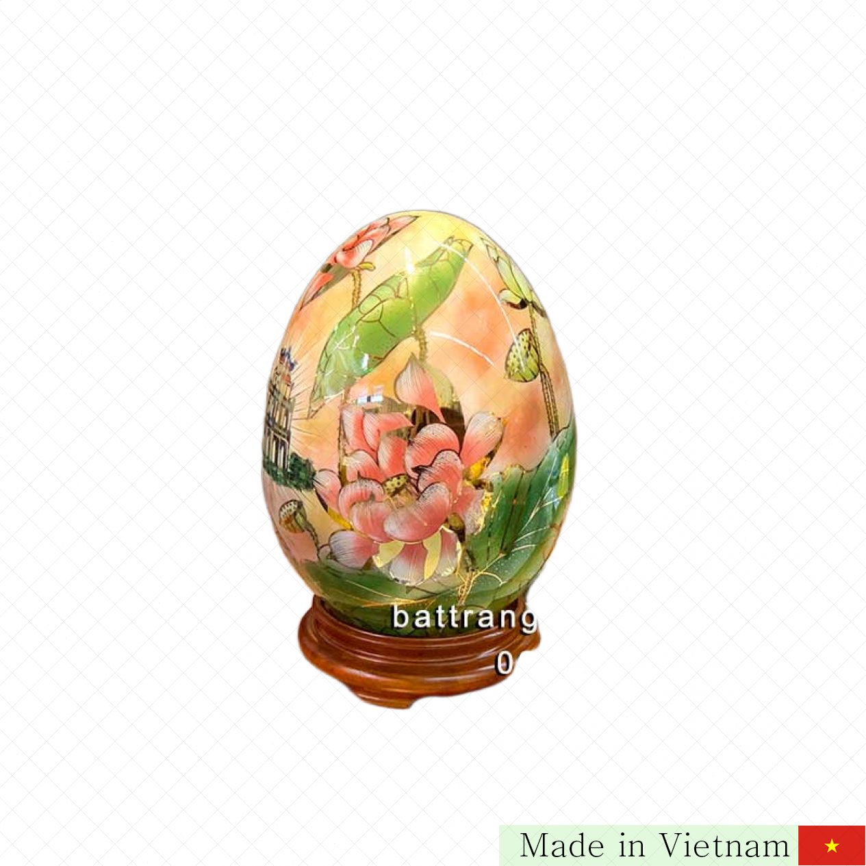 이 30cm 높이의 풍수 행운 계란은 최고급 바트짱 도자기 컬렉션 중 하나입니다. 손으로 정성스럽게 그려진 연꽃 무늬와 24K 황금빛 포인트가 만나 화려하면서도 고급스러운 분위기를 자아냅니다. 집이나 사무실의 중심에 두면 번영과 성공, 풍요로운 기운을 불러오는 완벽한 장식물입니다.