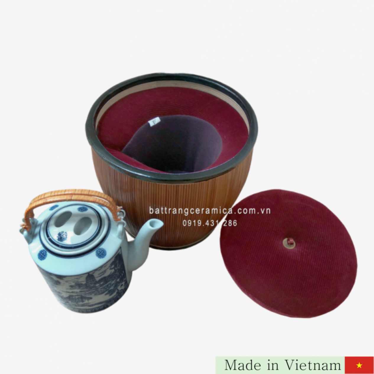 바트짱 전통 도자기의 고유한 기술로 제작되어 내구성은 물론, 고급스러운 벨벳 천 커버가 더해져 뛰어난 보온성을 자랑합니다. 실용성과 아름다움을 동시에 갖춘 디자인으로 한국 가정과 카페 모두에 잘 어울립니다.