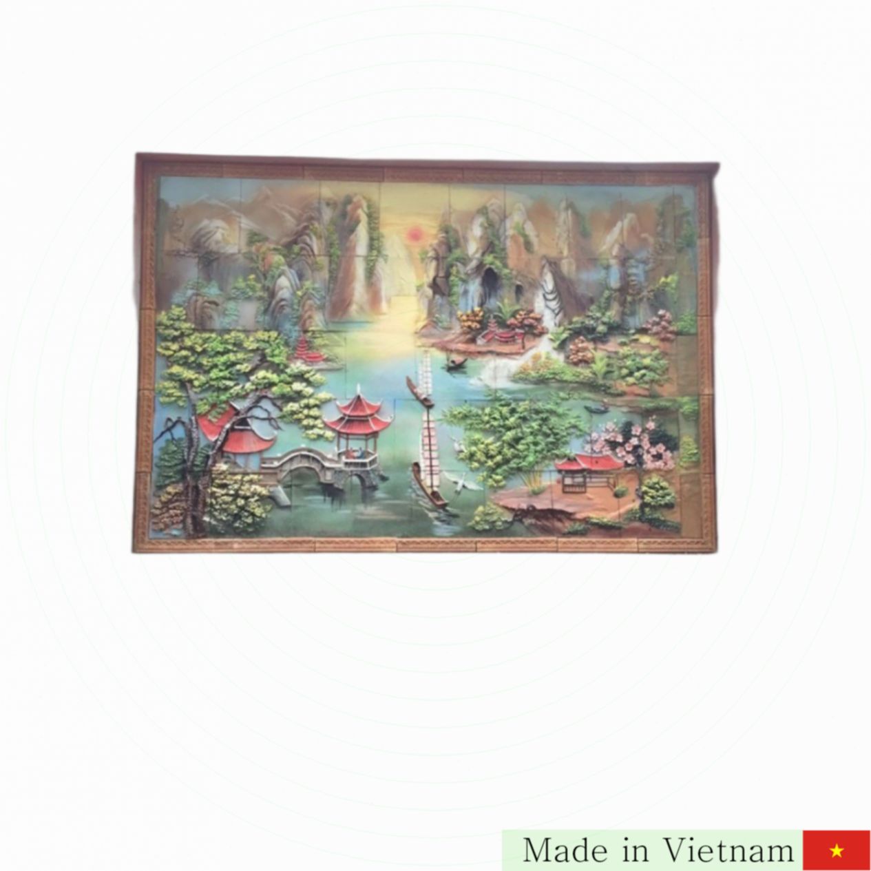 트렌디한 인테리어 장식으로 완벽한 ‘산수화 도자기 벽화’는 전통적인 바트짱(Bát Tràng) 도자기 공예의 정수를 담아 제작되었습니다. 뛰어난 내구성을 자랑하는 고온의 도자기 소재로 만들어졌으며, 크기 또한 높이 110cm, 가로 160cm로 웅장한 공간에 완벽히 어울립니다.